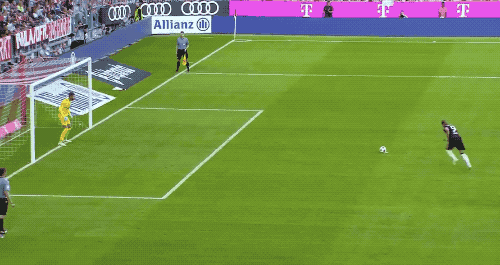 第13分钟,斯坦尼西奇突入禁区,拜仁旧将帕里尼亚一记放铲,送上点球。有意思的是,主罚点球的正是凯恩。