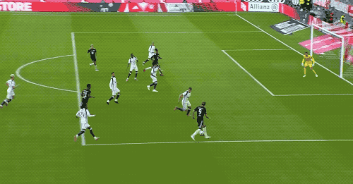 第62分钟,刚刚浪费机会的莱默尔完成助攻,科曼虚晃内切射门一气呵成,打进世界波。